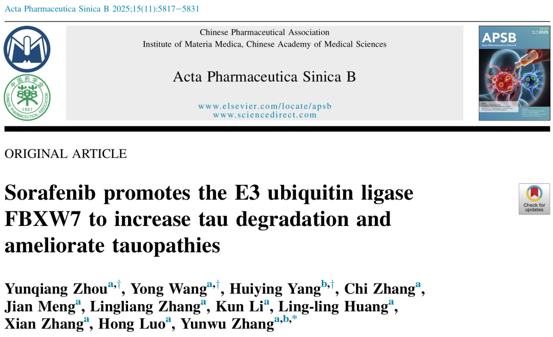 由廈門大學醫(yī)學院神經(jīng)科學研究所張云武教授團隊在《Acta Pharmaceutica Sinica B》(IF=14.6)上發(fā)表了探討抗癌藥索拉非尼在tau蛋白相關疾病中治療前景的研究。